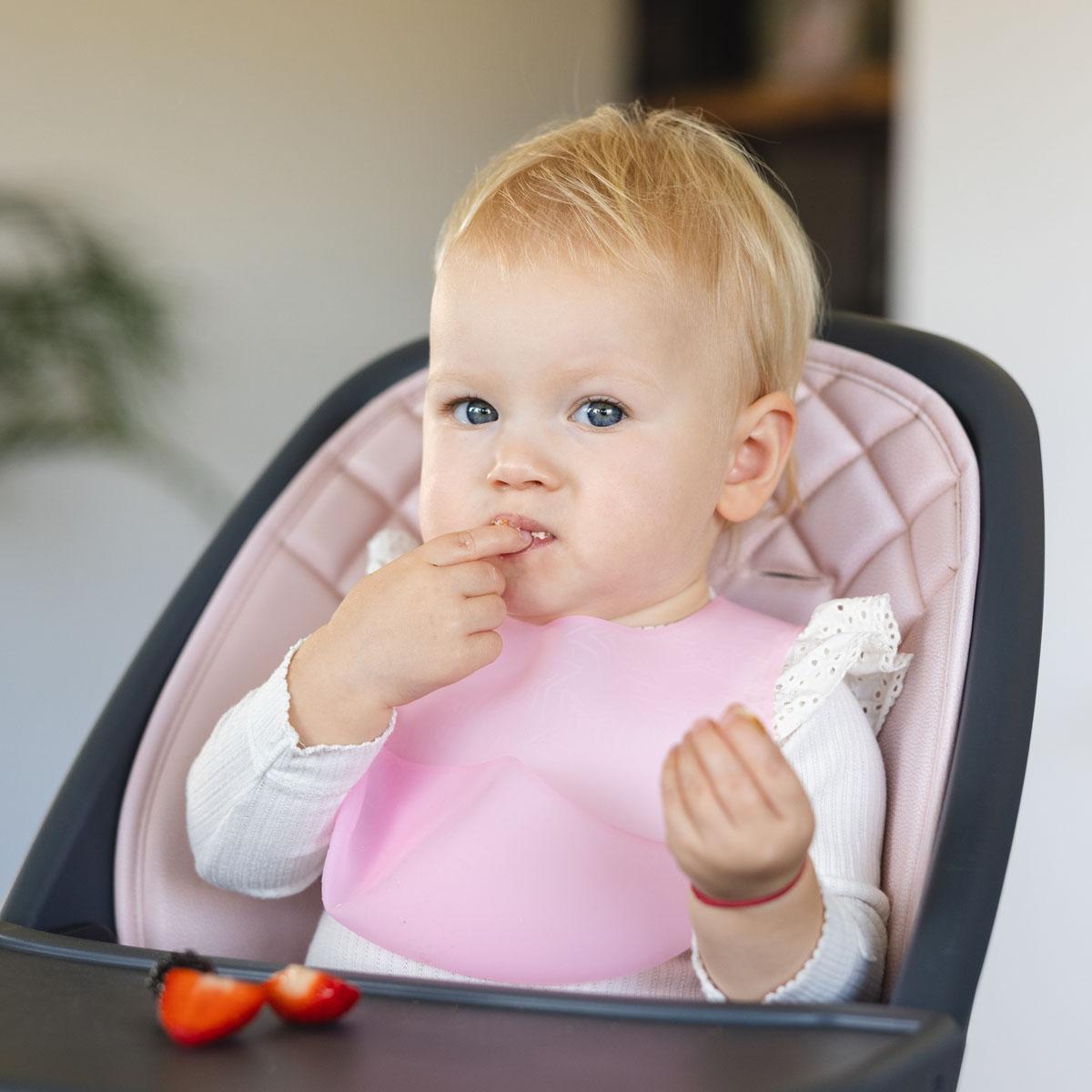 The ultrathin silicone bib, very light, perfectly adaptable to the shape of the baby, providing it with comfort. Thanks to this, it is almost imperceptible and successfully secures against dirt. Ideal for discovering new flavors with no worries of stains.