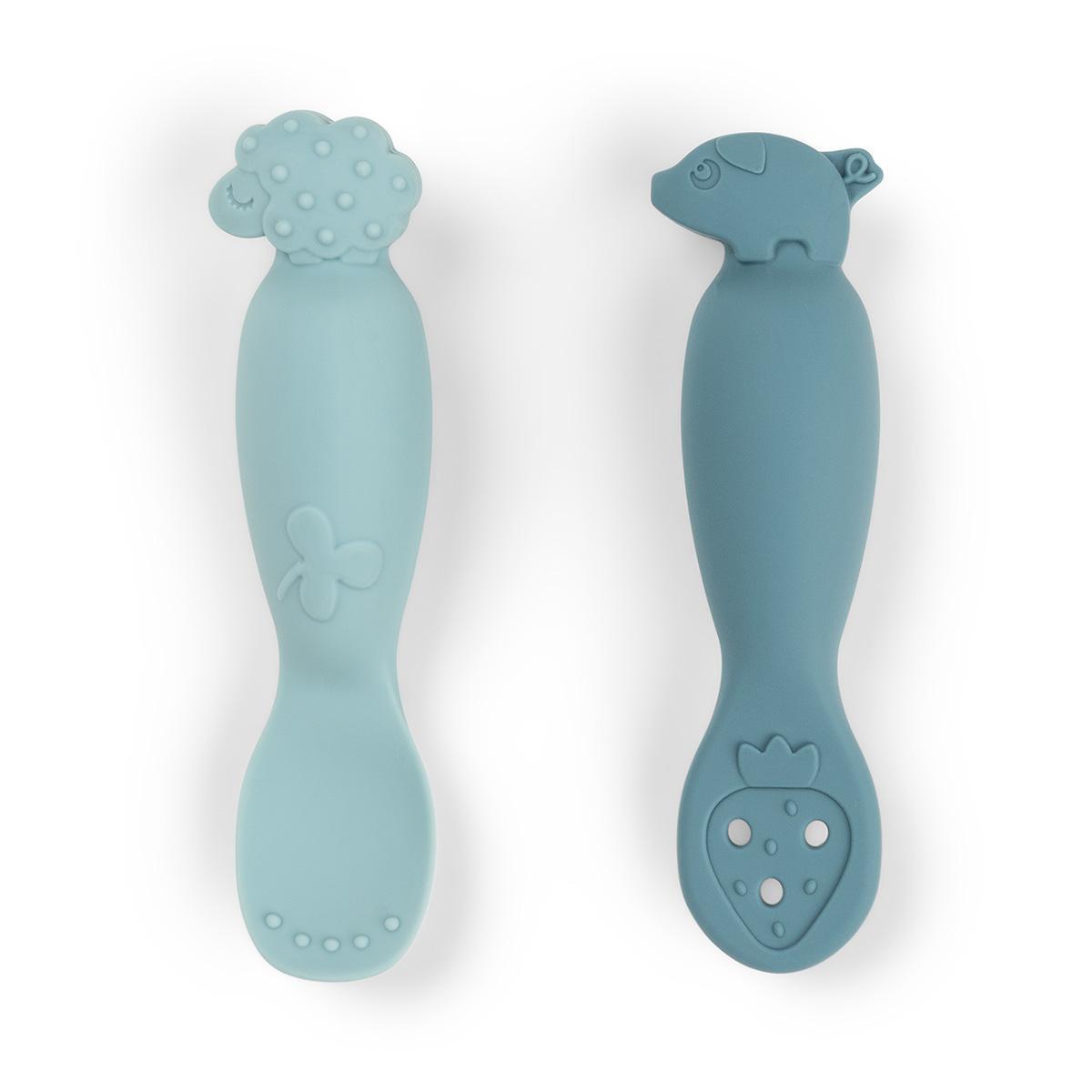Soft spoons made for little ones to explore food at their own pace. One spoon for dipping and one for scooping, both shaped to fit comfortably in small hands. The textured spoons invite little ones to explore and are gentle on sore gums.