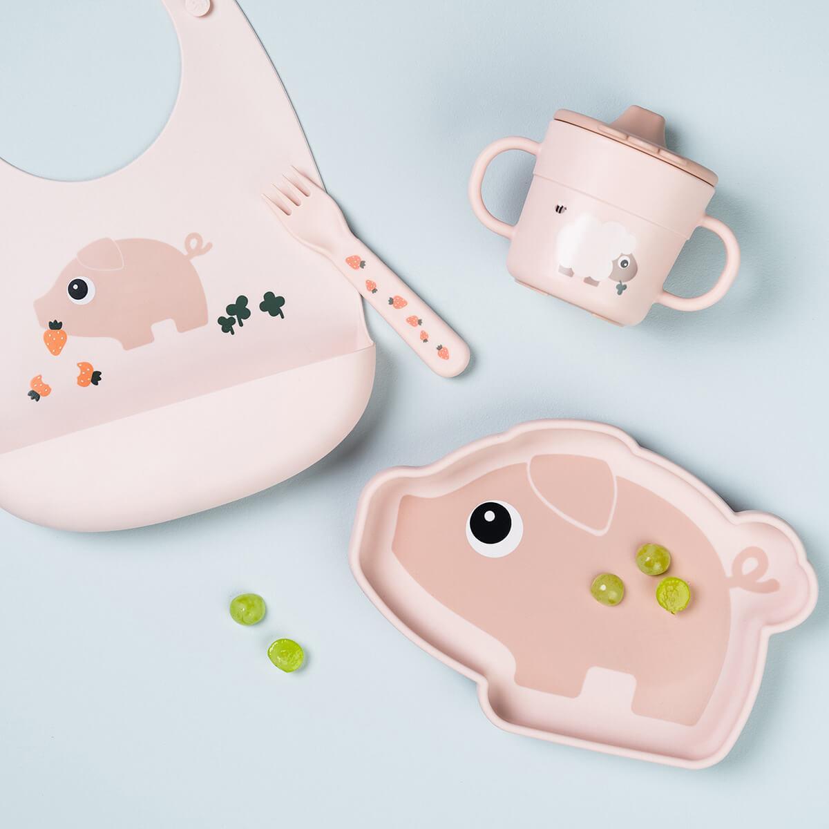 Made from soft, food-grade silicone free from BPA and harmful substances, its gentle on your little one and easy to wear. Simply wipe clean or pop it in the dishwasher for effortless cleaning. In a cute powder colour with a playful Pigee motif, this bib adds a fun touch to every meal.