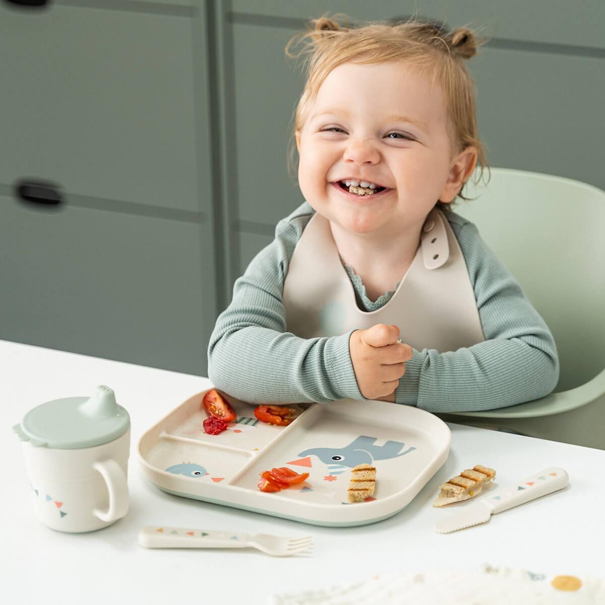 Well-dimensioned for easy grip, the set encourages self-feeding and confidence at the table. Made from durable recyclable materials, it’s a great choice for everyday use. In a soft sand colour with a charming Celebration motif, it brings a touch of joy to every bite.