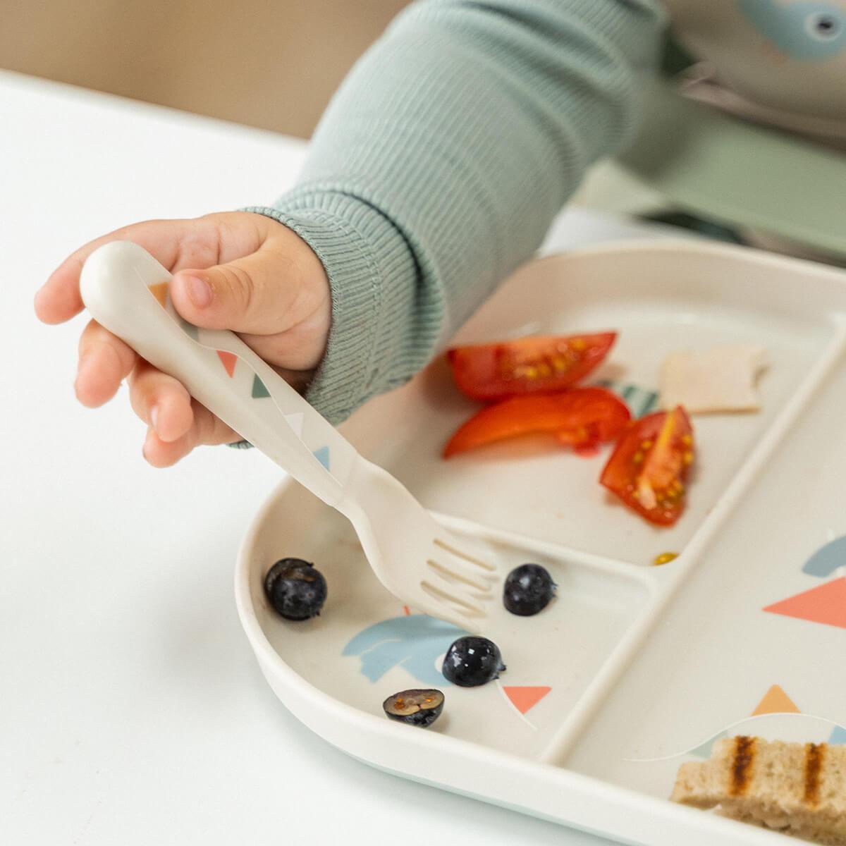 - Cutlery with soft rounded edges safe for your child to use