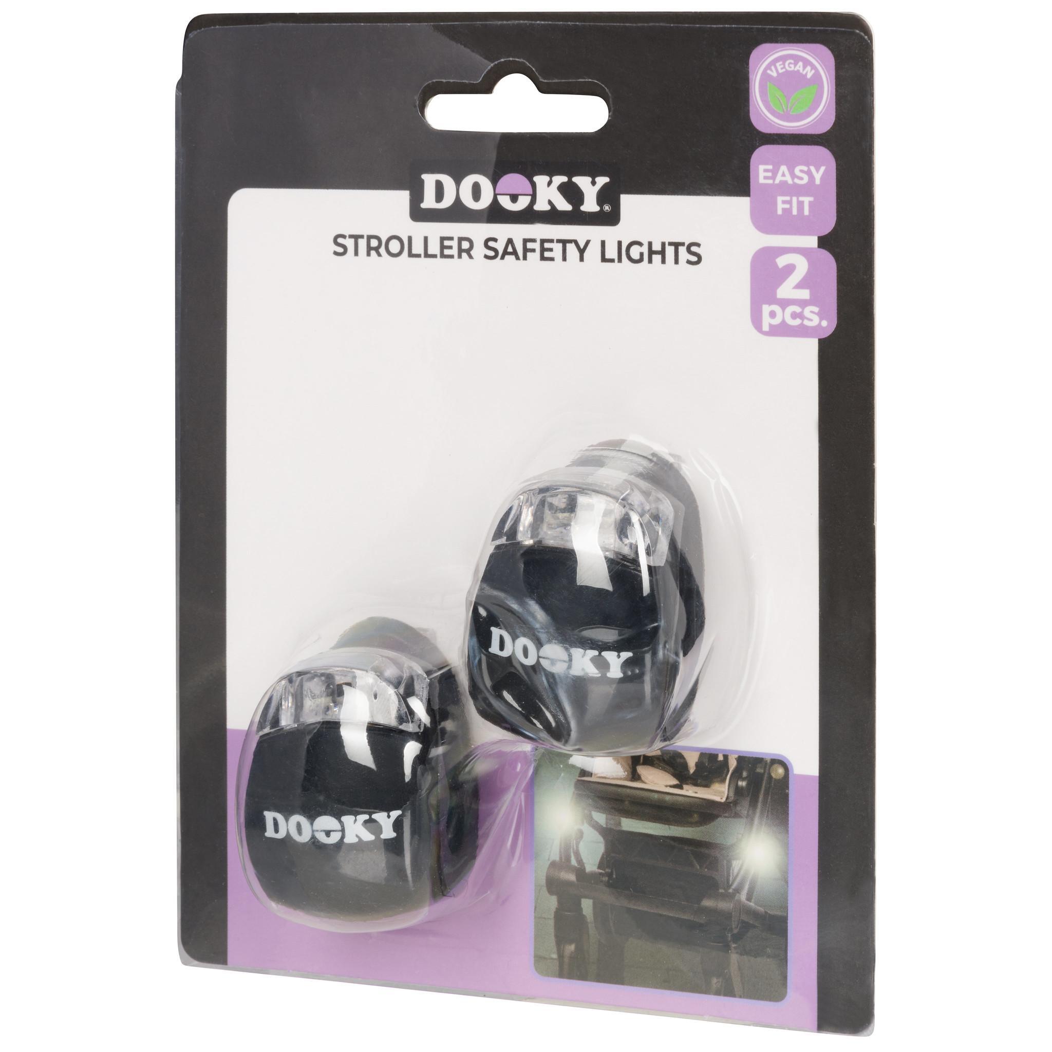 Create a better visibility and more safety in the evening or during dark days. At Dooky, we understand that life with your little one goes on 24/7, even when the sun goes down. The Stroller Safety Lights is the perfect combination of functionality and flair to make your adventures in the dark safe yet stylish. With the Stroller Safety Lights, you will be visible to others, ensuring extra safety during your outings. Don't let the dark days hold you back; with Dooky's lights, you'll be ready for any adventure, anytime. The Stroller Safety Lights is easy to attach. Don't let weather conditions limit your adventures. The lights are weatherproof and designed to protect your little one and your pram during rainy days and unexpected showers. Whether you have a modern pram with innovative features or a classic buggy the Stroller Safety Lights suits every style perfectly. The universal design makes these lights suitable for all types of prams and buggies. Each pack contains 2 pieces, including batteries (CR2032). With a compact size of 4 cm in length, 3.2 cm in width and 3 cm in height, they take up little space but add a considerable amount of safety and style. Let Your Adventures Shine with the Stroller Safety Lights! Ready to shine no matter the circumstances!