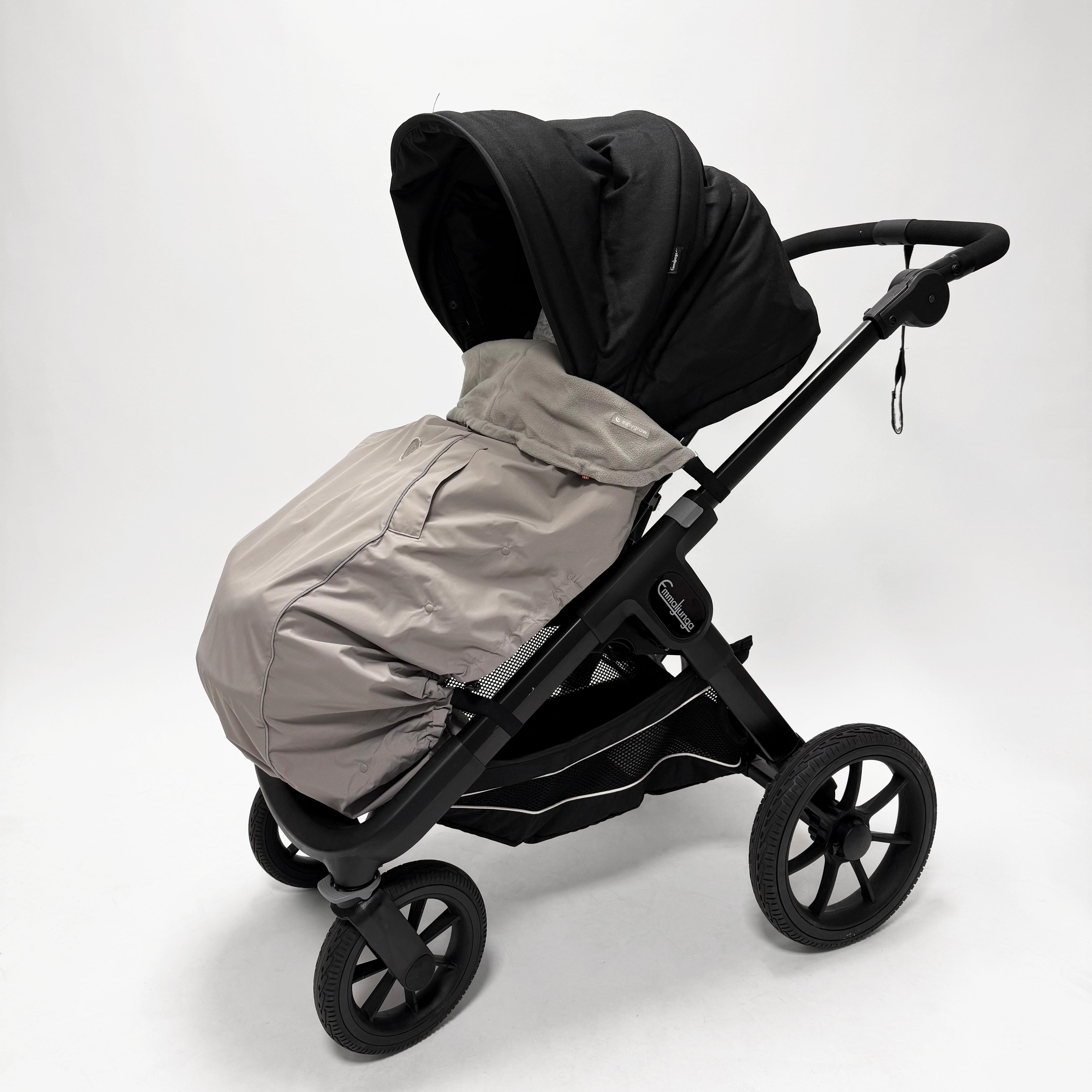 Külgmised paelad võimaldavad jalakatet pingutada ja reguleerida ümber jalutuskäru, kandekoti või rattahaagise.