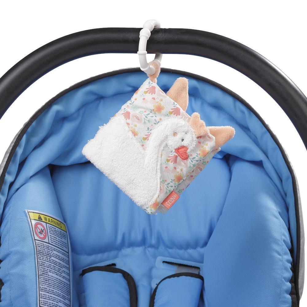 - Tänu C-rõngale saab pehme raamatu hõlpsasti lapsevankri, turvahälli või võrevoodi külge kinnitada – see hoiab mänguasja alati ja kõikjal turvaliselt läheduses
