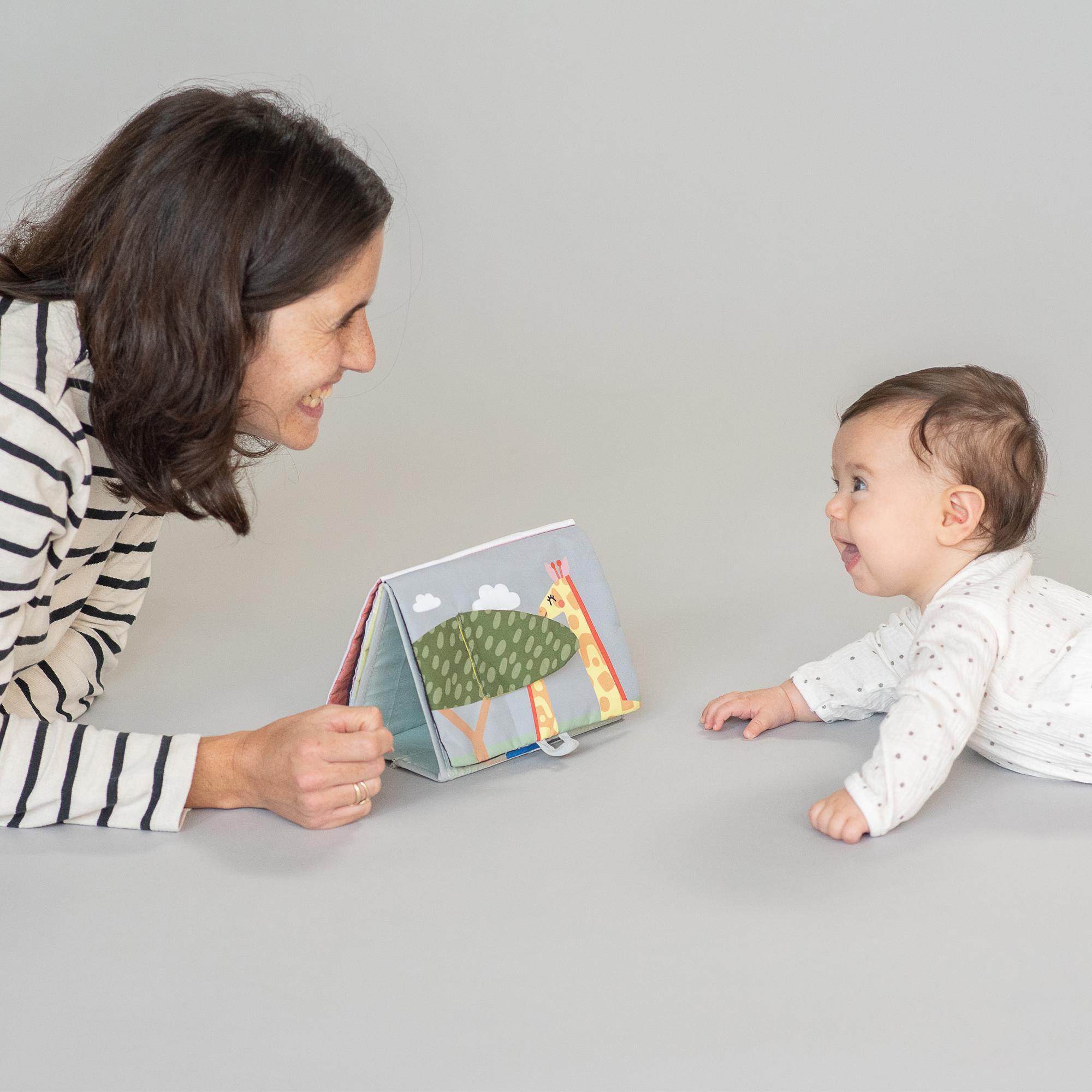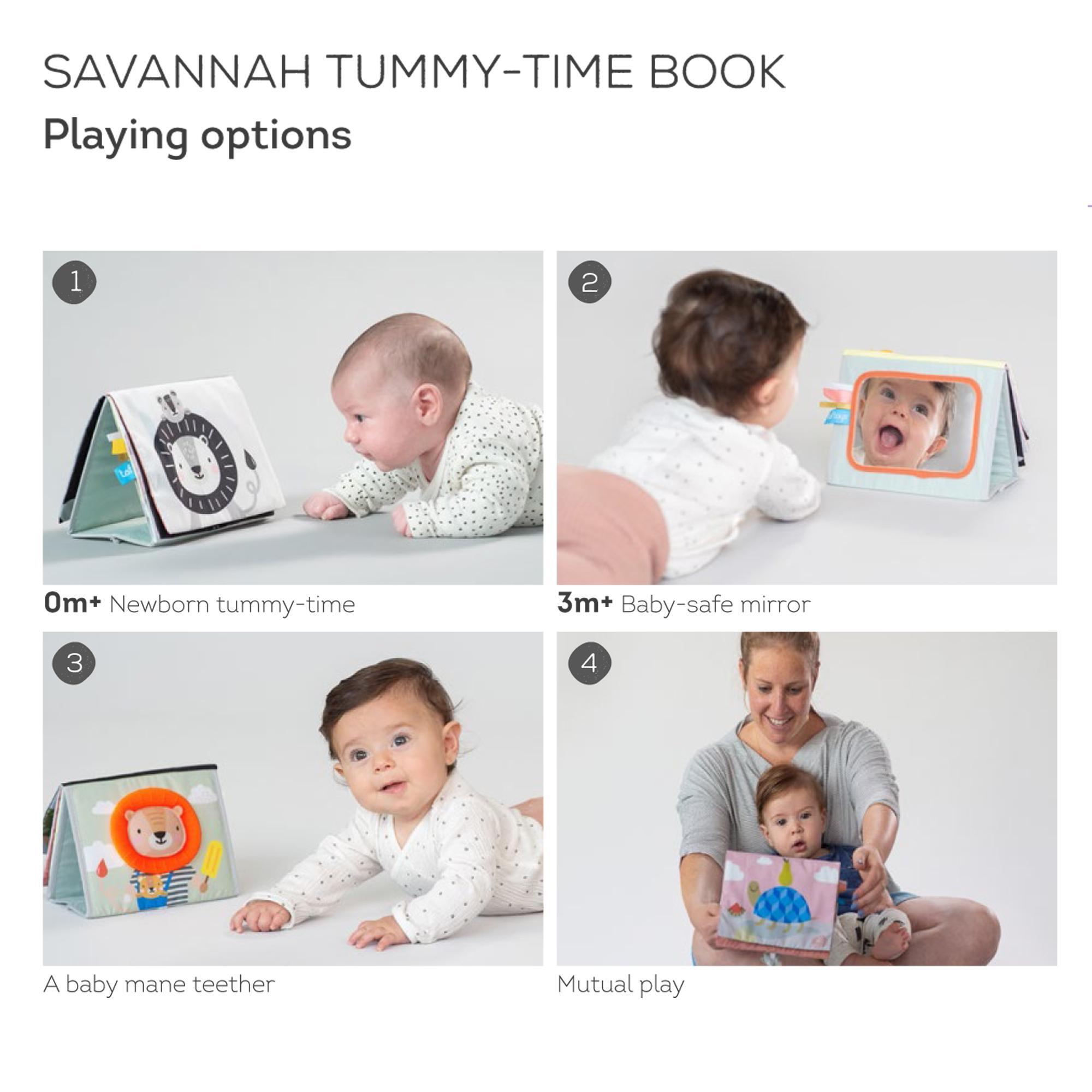 Kahepoolne, pehme ja krõbisev beebiraamat, on sobilik lapse kahele arenguetapile. Kaunite illustratsioonidega raamat on Taf Toys kollektsioonist Savannah.