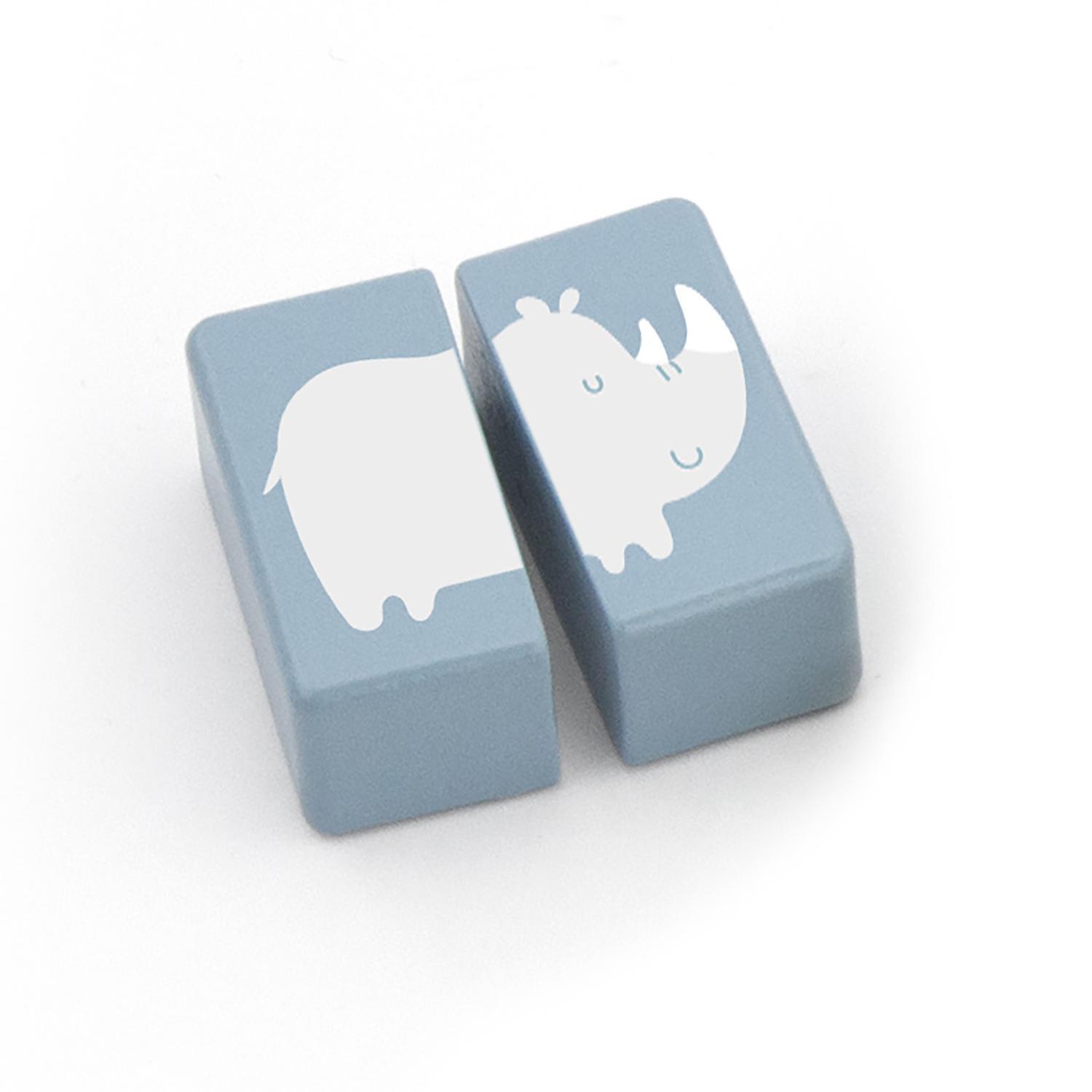 - Komplektis 9 armsa looma pildiga klotsi, mis on erineva värvi ja geomeetrilise kujuga.